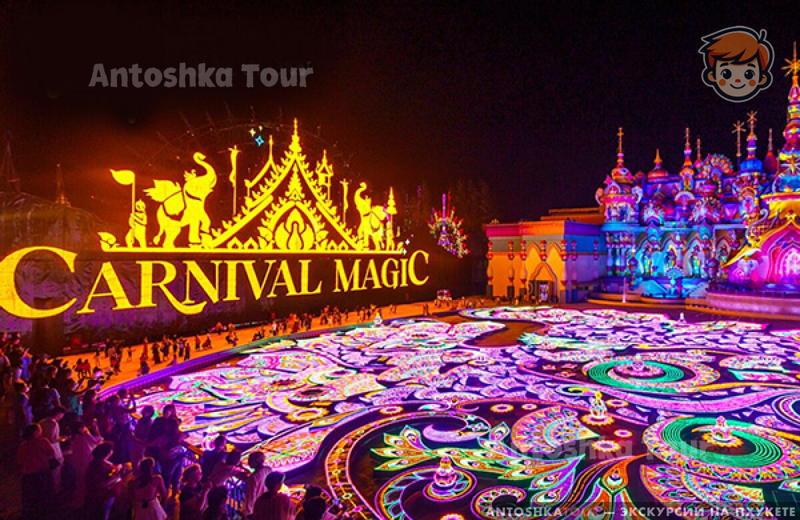 Шоу Карнавал сначала показался сюрреалистичным и странным, так как привезли очень рано в 17:30 и парк аттракционов казался странным. Но затем, когда начался сначала уличный карнавал и затем уже само шоу, то впечатление улучшилось. Достаточно интересно и самобытно! Световой парк в конце также понравился! В целом вечер прошёл запоминающеся! Спасибо за ваши советы в выборе экскурсий, рекомендую вашу команду всем своим знакомым! Спасибо за миллион воспоминаний о райской стране Тайланд!