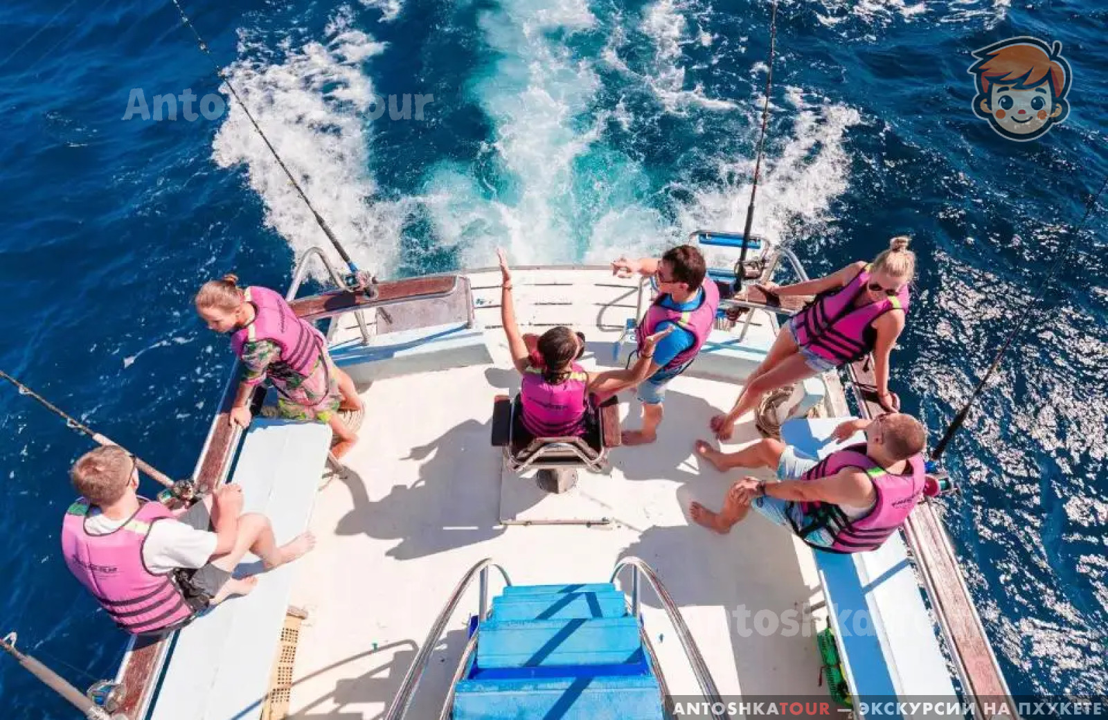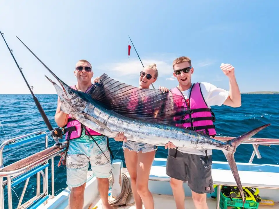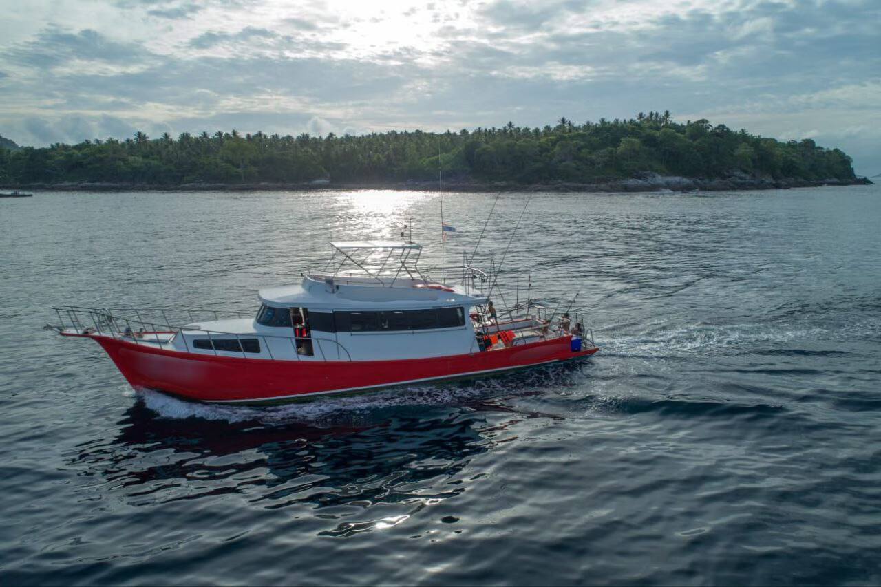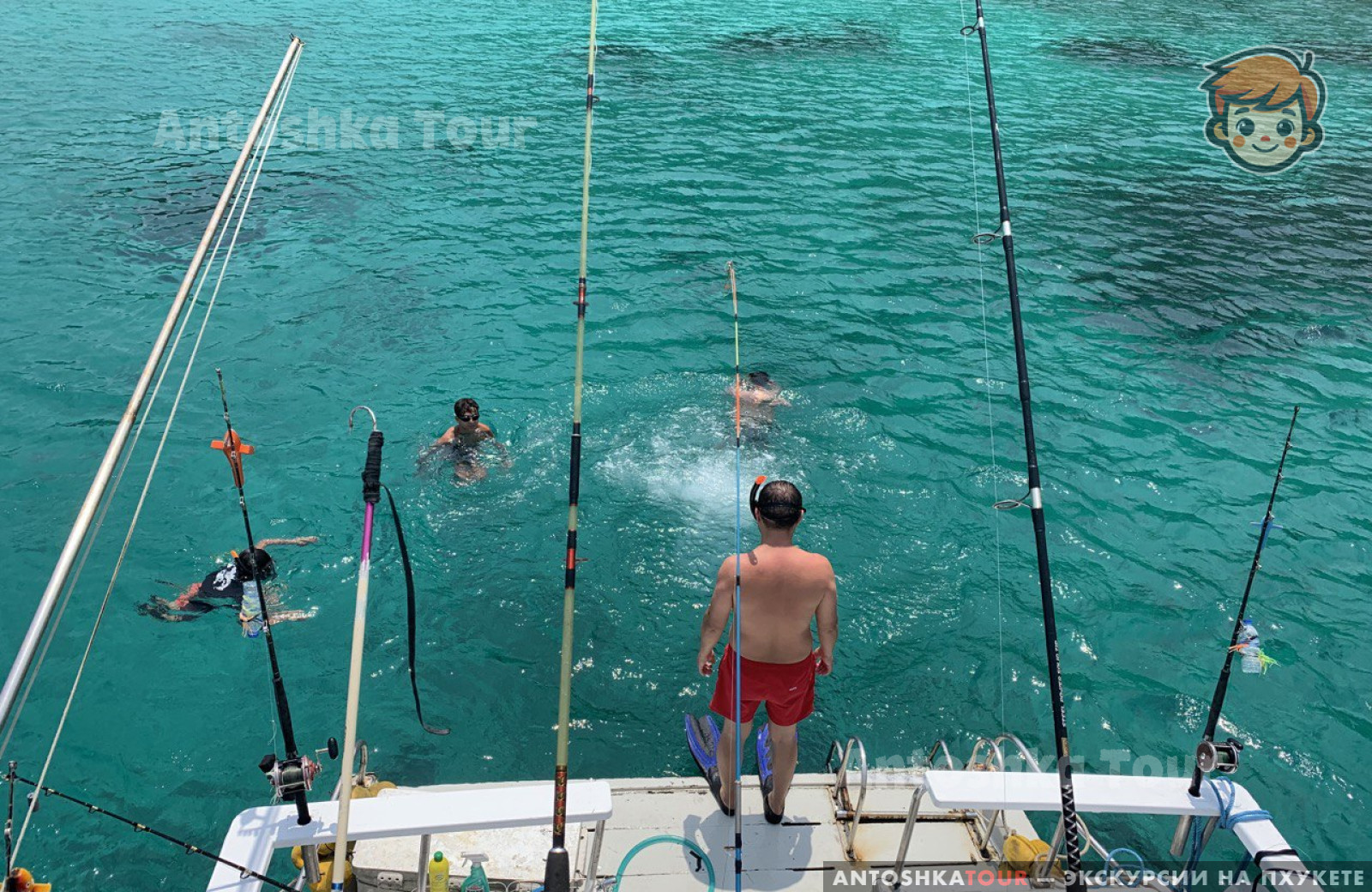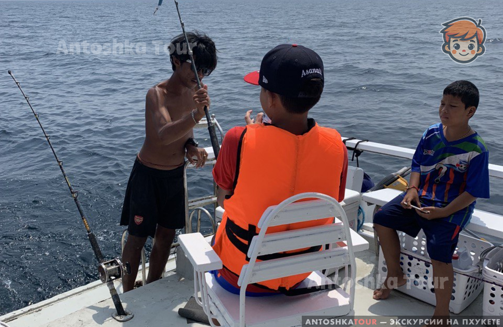| Отправление с пристани Чалонг и начало троллинга по пути на остров Рача. Сразу после выхода в море, тайский персонал раскладывает удочки и бросает 6 лесок на полном ходу для троллинга. В это время вы можете расслабиться, загорать и следить за уловом. Вы также можете наслаждаться напитками, общением и веселым времяпрепровождением с другими участниками. Когда рыба попадается на крючок, каждому рыбаку по очереди предлагают вытащить её. | |