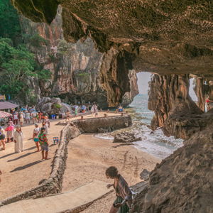 | Прибытие на остров Панак, чтобы полюбоваться прекрасными сталактитами, пещерой и лагуной. | |