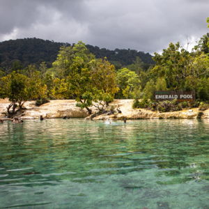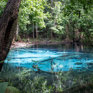 | Короткая прогулка по тропе в джунглях и фотопауза у Голубого озера. Это место не нуждается в фильтрах — вода светится мистическим бирюзовым сиянием, а воздух будто наполнен волшебством. | |