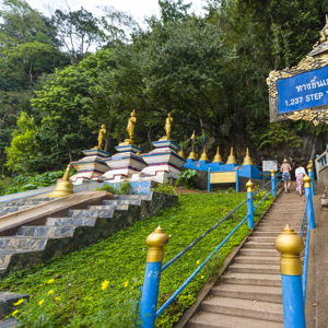 | Храм Пещера Тигра — место силы, тишины и умиротворения. Для тех, кто готов к небольшому вызову — 1260 ступеней вверх. Шаг за шагом — и вы на вершине, где открывается панорамный вид, от которого замирает сердце: бескрайние джунгли, скалы и небо как на ладони. Важно: подъём по желанию, а внизу — тёплая, духовная атмосфера пещерного монастыря, статуи Будды и шанс понаблюдать за забавными обезьянами. Каждый найдёт своё. Подъём к храму Пещера Тигра — по желанию. А пока одни отправляются покорять 1260 ступеней к вершине, другие могут прекрасно провести время внизу — здесь тоже есть что посмотреть и почувствовать. У подножия расположено сразу несколько интересных и атмосферных мест: Пещера, где молятся монахи — тихое пространство, наполненное спокойствием. Храм Богини Милосердия в китайском стиле и второй храм в традиционном тайском духе. Проход между скалами — живописная тропинка для короткой прогулки среди природы. Здесь же можно пообщаться с озорными обезьянами, понаблюдать за их повадками и сделать забавные фото. На территории работает кафе, где приятно выпить свежий кокос или прохладный напиток. Также вы можете провести настоящий тайский ритуал “Сай Син” — повязать ленточку на руку на удачу и благополучие. Вокруг — зелёные джунгли, по которым приятно просто прогуляться, ловя моменты уединения и тишины. Даже без подъёма — это место оставляет впечатление, словно прикоснулся к чему-то настоящему и живому. | |